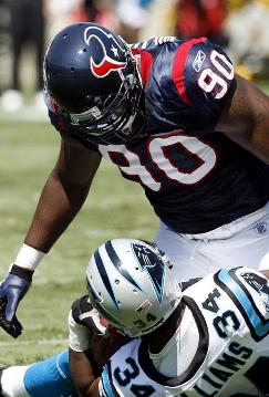 -Very active around the line, if he gets double teamed (which he often does in their 4-3 scheme) he will weave in and out to try to separate the double team or find a hole in the protection. Does a great job confusing offensive lineman.